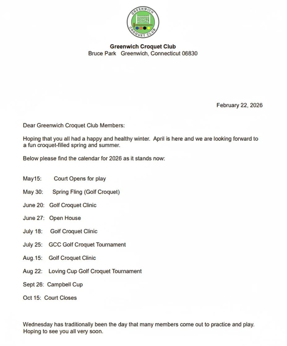 Greenwich Croquet Club 2026 Calendar